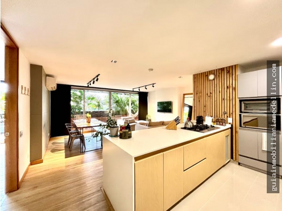 Apartamento en La loma de Benedictinos Envigado con Espectacular terraza y zona BBQ, Jardín y pérgola y deck en madera natural.